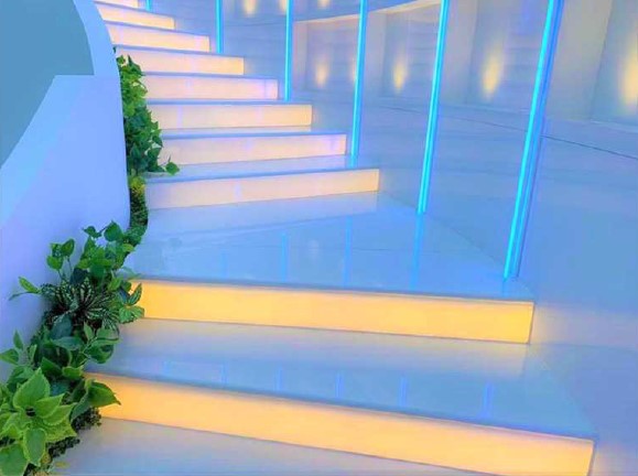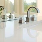 Additionally, nano-crystallized glass has a water absorption rate of 0.004 percent to 0.02 percent, and it is totally radiation free. As expected, the material also has a DIN 4102 flammability rating of A1. The stone is environmentally friendly, pure white without air pores, and has no water absorption. It has very good weathering resistance, acid resistance, alkaline resistance, and is easy to clean and maintain. Nano glass can be used in kitchen countertops, bathroom vanity tops, any tops, flooring, wall cladding, stairs, basically anywhere indoors and outdoors.